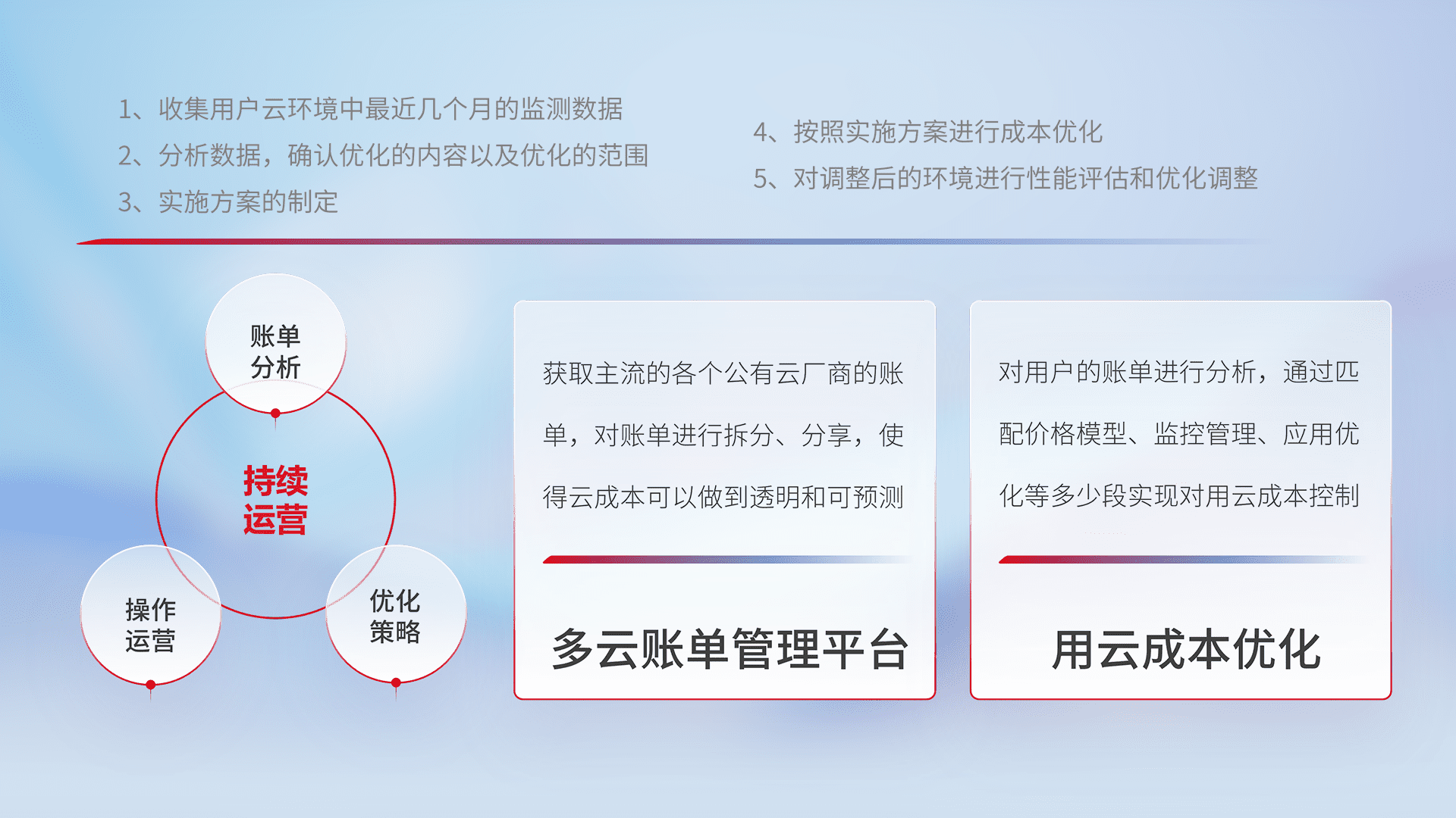 运用智能化工具分析云资源,,,提供日常费用可视化工具,,自动账单拆分,,,成本优化云上费用,,降本增效。。